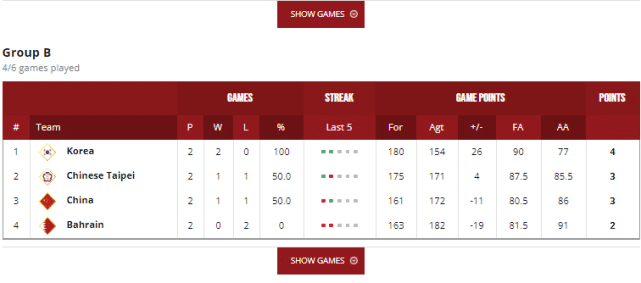 24直播网07月15日讯中国男篮在亚洲杯取得1胜1负的战绩,先是12分劣势不敌韩国队,随后以1分险胜巴林队。亚洲杯的规则是相比较胜场数,相同的话比较两队之间的胜负关系,韩国队两连胜击败中国队和中国台北男篮,提前锁定小组第一。中国队击败巴林队,即便是巴林队末战击败第一的韩国队,也无法超越中国男篮。所以中国男篮锁定附加赛的资格,末轮要和中国台北男篮争夺小组第二名,第二和第三参加附加赛。