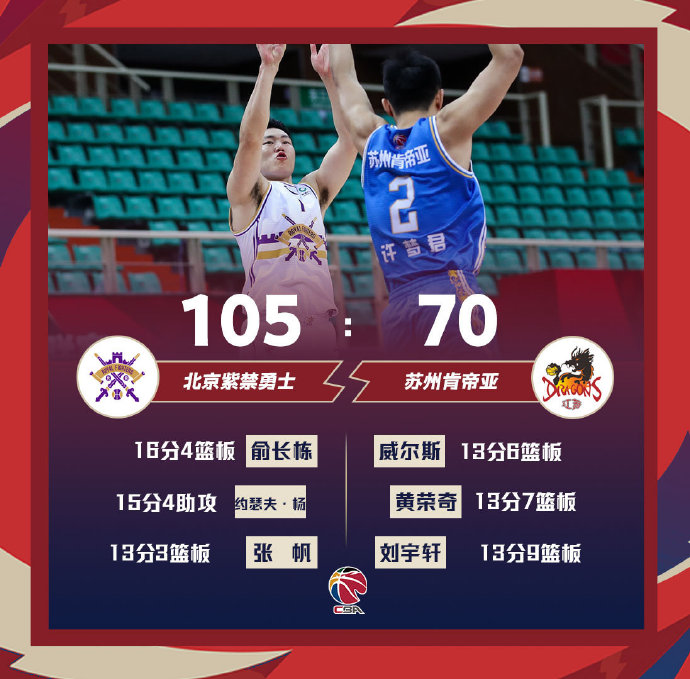 北控(25-27):俞长栋16分4篮板,约瑟夫-杨15分,孙悦5分,张帆13分,邹雨宸8分7篮板7失误,马泳12分,王少杰6分7篮板,候逸凡6分5篮板,王子瑞4分3助攻,尤度9分9篮板3助攻,李根7分4篮板,哈里森4分。