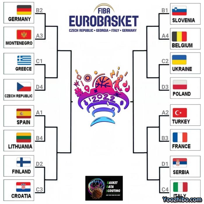 西班牙4胜1负A组第一,淘汰赛对阵立陶宛,9月10日20点45分开打;芬兰对阵克罗地亚,9月11日14点45分开打。