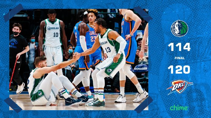 24直播网2月3日讯 NBA常规赛,独行侠主场迎战雷霆,此役雷霆核心亚历山大和独行侠大将波尔津吉斯均作壁上观。首节东契奇手感火热,一人里突外投无所不能,然而雷霆却靠着基迪、多特和维金斯的三分雨取得领先,次节雷霆替补进攻哑火,独行侠趁机打出一波7-0反超比分,好在基迪、多特等主力回归后雷霆重回正轨,半场结束前顽强的将比分追平。第三节两队展开三分对飚大战,独行侠这边虽然火力不弱,奈何对面三分超神,曼恩、多特等人单节飚中七记三分为球队取得了9分的优势,末节布伦森及时挺身而出,他以一己之力带队打出11-1的反击缩小比分,怎料之后他们却陷入4分多钟的得分荒错失追分良机,好在东契奇之后大发神威带队反超比分,雷霆则靠着威廉姆斯的空接将比赛拖入加时。加时赛多特一人连得14分打了对手一个措手不及,东契奇则未能延续末节的手感,只能眼睁睁看着分差被拉开,最终雷霆120-114击败独行侠。