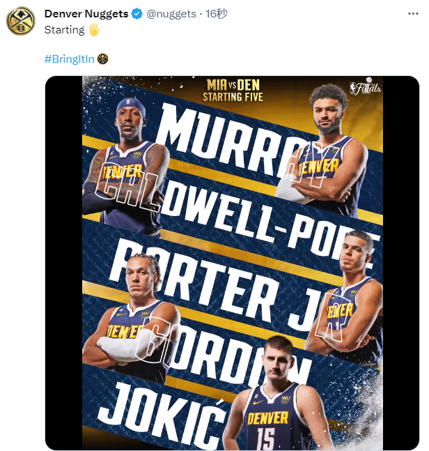 掘金G5保持原有首发,约基奇、穆雷、小波特、波普和戈登继续担任首发五虎,今年季后赛至今,他们五人一直首发,G5是他们首发出战的第20场比赛。