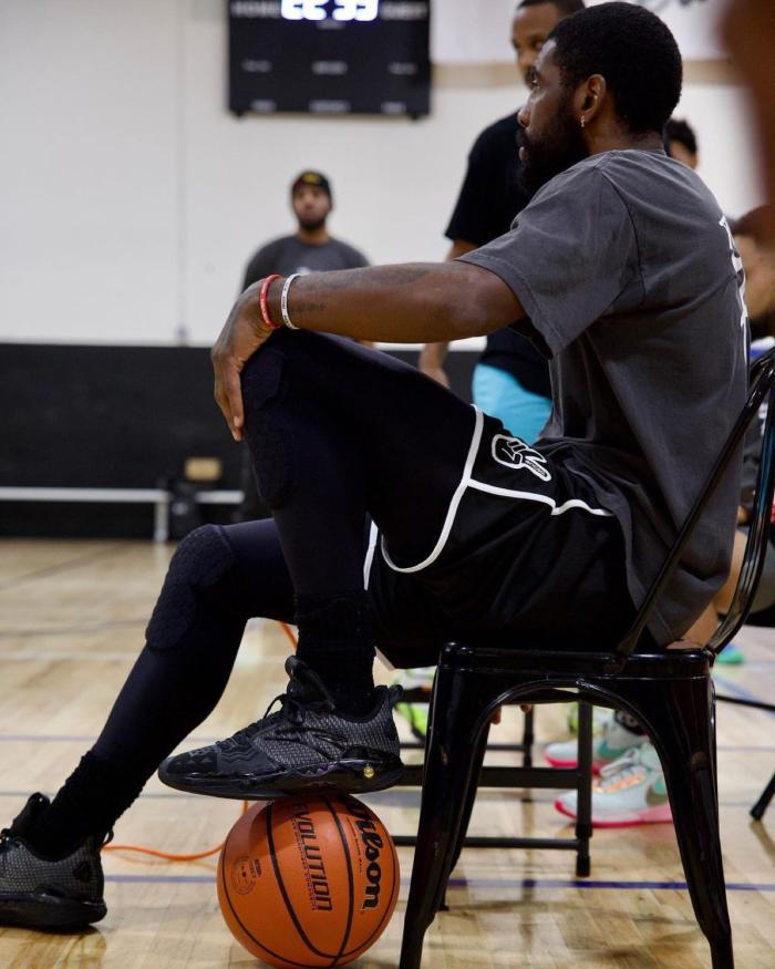 欧文戴着棒球帽、身穿中国品牌安踏的长袖连帽卫衣,坐在场边观看德鲁联赛,在镜头中,欧文公开承诺,他将会出战今年的德鲁联赛。