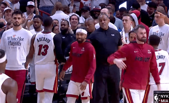 24直播网05月09日NBA季后赛东部半决赛G4,热火主场击败尼克斯,大比分已经3-1领先,斩获系列赛的赛点,距离晋级东部决赛,只差一场胜利。尼克斯已经被逼入绝境,想要晋级,必须要取得三连胜才行。这场比赛巴特勒和阿德巴约表现强势,巴特勒27分6板10助2断2帽,阿德巴约23分13板。尤其是巴特勒,末节的上篮和助攻,帮助球队拿下胜利赛后加内特盛赞巴特勒:“季后赛的吉米就是一个混蛋”