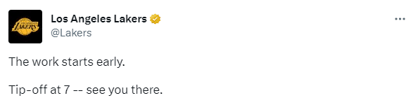 NBA官方发推写道:勒布朗·詹姆斯如何为他的第 276 场季后赛做准备 ,提前 5 个多小时到达!湖人官方则表示詹姆斯很早就开始训练了。