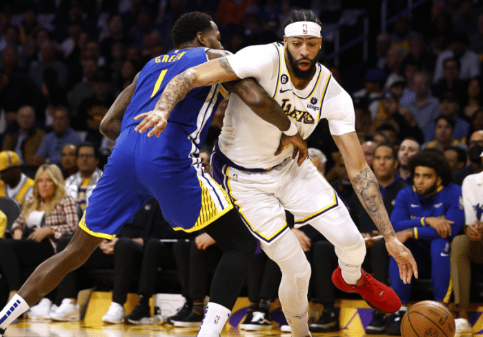 下半场,湖人第三节8-2扩大领先,浓眉强突接造格林2次犯规,追梦5犯被迫下场;随后勇士继续追分,浓眉大帽库里后冲过去补防维金斯,结果惨遭嘴哥隔扣沦为背景板;之后詹姆斯发力,进攻端连续得分,防守端奔袭全场,破坏库里传球后冲进观众席二层看台,詹眉带队一波流拉开分差。