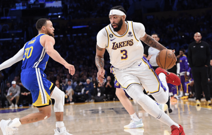 24直播网讯05月07日,NBA季后赛湖人主场大胜勇士30分,系列赛总比分2-1领先,浓眉全场10投7中轰下25分13篮板3助攻3抢断4盖帽,多次重摔倒地撞伤肋骨,末节坐在替补席仍捂着肋骨;湖人第二节30-8奠定胜局,之后牢牢掌控局面,詹眉提前9分钟打卡下班,坐替补席有说有笑,开怀畅聊。