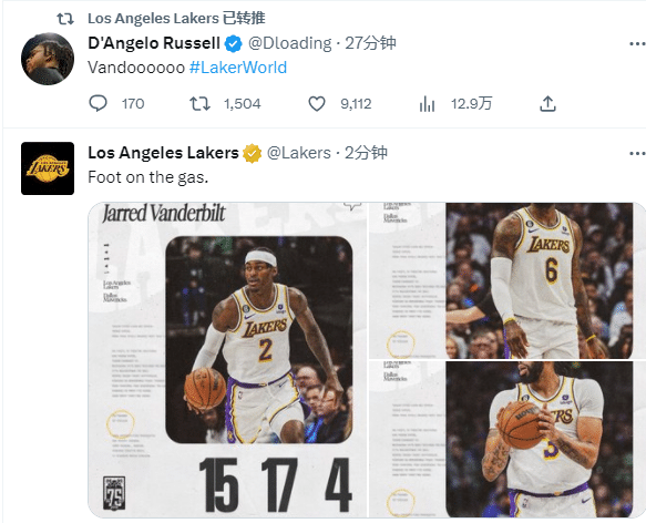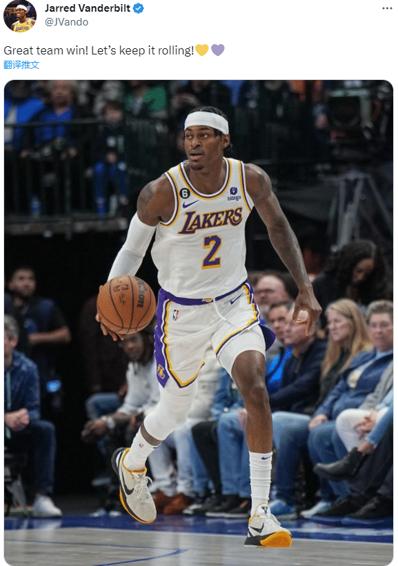 范德彪的出色表现引盛赞,球迷称其为湖人版罗德曼,湖人官推直言范德彪无处不在;拉塞尔发推高呼:范德彪彪彪。