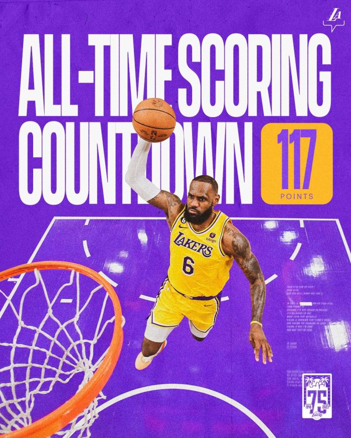 詹姆斯时隔3年首次重返麦迪逊花园球馆打比赛,目前他的总得分是38271分,距离超越贾巴尔(38387分)仅仅只差117分,湖人官方为老詹造势:国王倒计时,距离历史得分王仅差117分。