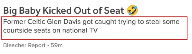 今年3月份,大宝贝现身凯尔特人主场,观看绿军和篮网一战。他被发现坐在了其他球迷的座位上,被当时在场上打球的杜兰特直接吐槽。当最终有球迷来到他身边表示这是自己的座位时,大宝贝尴尬地起身离开。