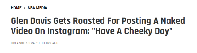 24直播网05月20日讯 ,前几天前NBA球员格伦-戴维斯更新IG社媒,晒出了自己早晨裸泳的场面,球迷们纷纷感慨辣眼睛。戴维斯绰号“大宝贝”,现年36岁,不过由于缺乏自律,他在2014-15赛季后就无球可打了,当时他只有29岁。