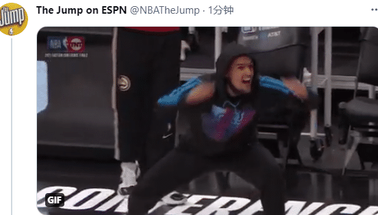 卡佩拉神仙球点燃全场,坐在场边观战的特雷-杨兴奋地疯狂怒吼庆祝,老鹰名宿穆托姆博则是双手抱头,一脸不敢相信的样子。