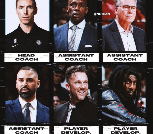 篮网的助教天团还是很豪华的,主帅是纳什,首席助教是沃恩,另外的三名助教是德安东尼、尤杜卡和奥特,都说篮网是非常有钱任性,不仅球员方面是联盟顶级,教练团队,尤其是助教团也是相当豪华。