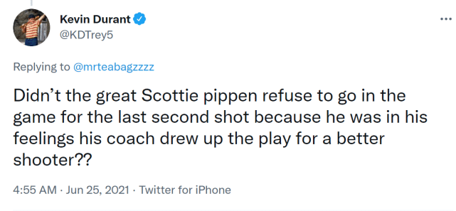 杜兰特先是在社交媒体上回怼,关键的比赛?伟大的皮蓬拒绝在最后时刻登场,难道不是因为菲尔杰克逊为队内更好地射手制定战术?
