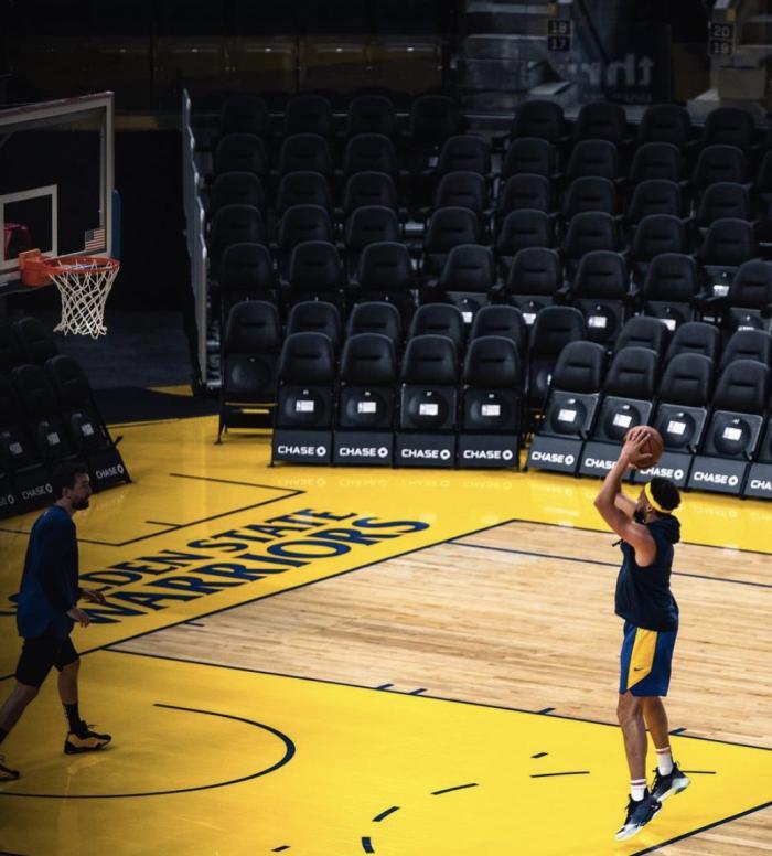 汤普森身穿印有“奥克兰”的勇士训练服,戴着黄色发带,来到勇士球馆进行训练——运球奔跑、中距离跳投和跳投三分,能跑能跳,这说明汤普森的跟腱康复进展很喜人。