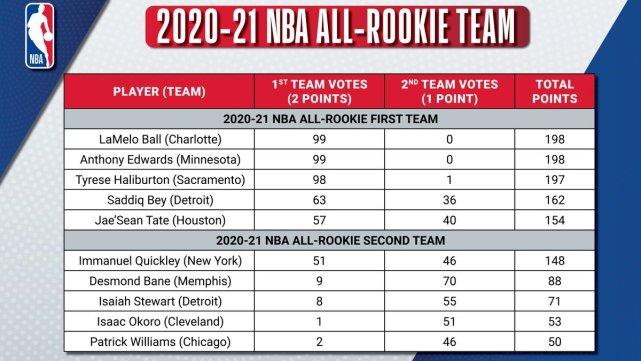 随后,官方公布了这次最佳新秀阵容的投票结果——