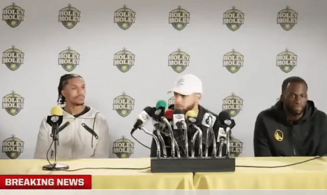 库里对于高尔夫可以用痴迷来形容,近日他开始为自己的高尔夫节目《Holey Moley》做宣传,发布会的时候记者也来了不少,而库里也带上了自己的队友,包括追梦格林、达米恩李和贝兹莫尔,这些人都是库里场上的队友、场下的好友,所以他们也都前来捧场。