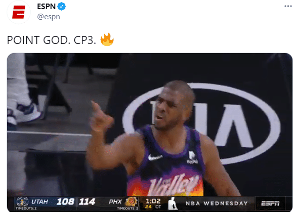 美媒ESPN盛赞保罗是控卫之神,另外美媒NBA on ESPN则是曝光保罗不老的秘密——保罗喝的黄色饮料上贴着一个标签——保罗的秘密武器;美媒Clutch Points调侃每个人都想知道保罗是如何带队赢球的,偷看下保罗的饮料。