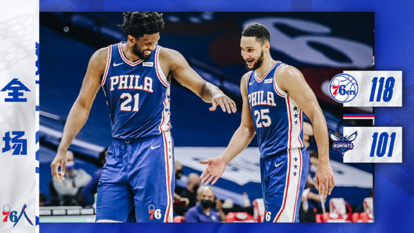 76人118-101轻取黄蜂 恩比德携哈里斯合砍36分16板