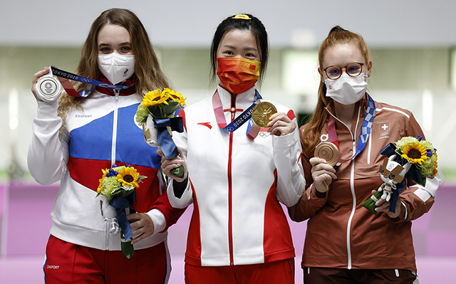 24直播网7月24日讯 2020年东京奥运会展开女子射击项目的争夺,在奥运首金项目女子10米气步枪争夺中,中国选手杨倩顶住压力,以251.8环拿下金牌!俄罗斯奥运选手队的加拉什娜和瑞士选手克里斯滕分获银牌、铜牌。
