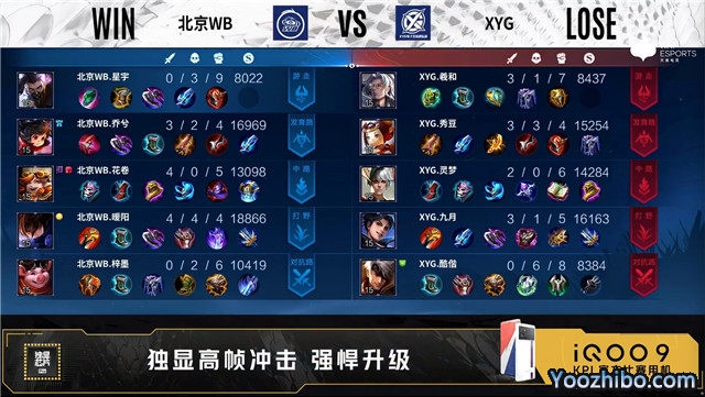 双方常规开局。2分48秒北京WB中路击杀太乙真人拿到一血。3分53秒北京WB拿下暴君。4分24秒北京WB中路击杀太乙真人。5分05秒XYG发育路击杀黄忠。5分17秒北京WB发育路击杀虞姬。7分11秒北京WB摧毁敌方中路外塔。8分11秒北京WB拿下暴君。8分24秒北京WB摧毁敌方中路二塔。9分56秒野区团战北京WB击杀太乙真人。11分55秒北京WB摧毁敌方中路、对抗路高地塔。12分22秒北京WB摧毁敌方水晶拿下比赛。