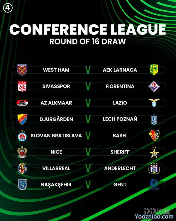 欧会杯1/8决赛对阵如下: