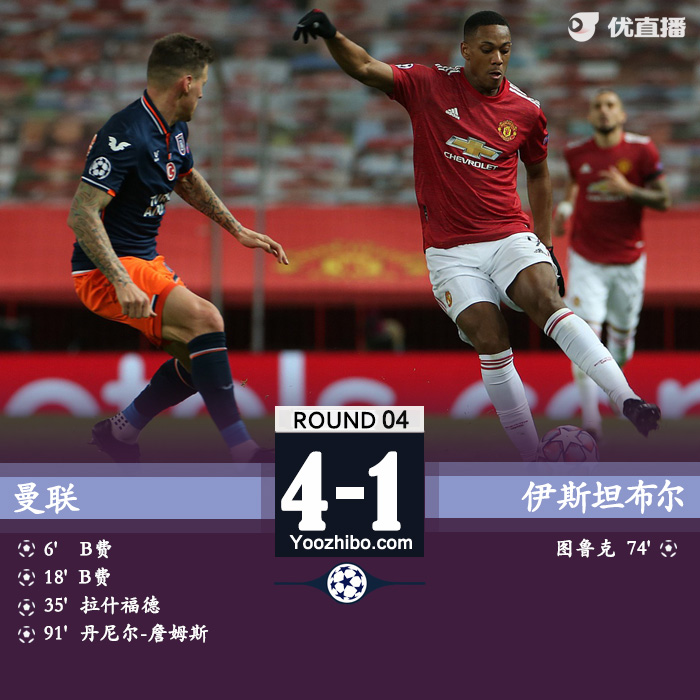 最终,全场比赛结束,曼联在主场以4-1的比分战胜了伊斯坦布尔。