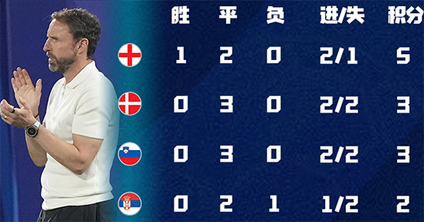 欧洲杯C组:英格兰虽居首但发挥差,斯洛文尼亚出线创纪录