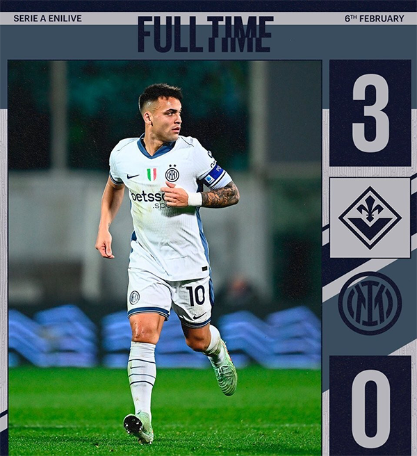 24直播网讯 在北京时间2月7日凌晨结束的意甲第14轮一场补赛中,卫冕冠军国际米兰客场爆冷0-3完败给佛罗伦萨。错失登顶意甲积分榜的绝佳良机后,以3分之差屈居次席。