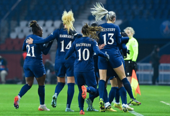 24直播网03月22日讯 巴黎圣日耳曼女足各项赛事高歌猛进,本赛季法甲、法国杯、欧冠3条线均加入了争冠行列,而且距离冠军奖杯越来越近,又一次直奔3冠王而去。法甲女足比赛16场拿到了13胜3平,以42分暂列第二名,里昂女足43分领跑;法国女足杯则进入了决赛,再次会师里昂女足;欧冠赛场进入了1/4决赛。