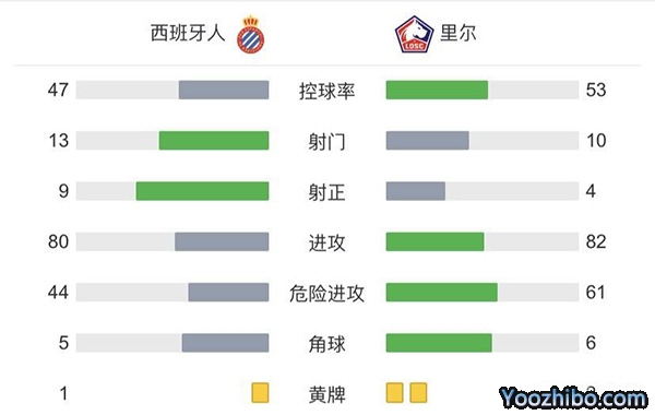 第59分钟,西班牙人新援何塞卢打破僵局。西班牙人1-0里尔。