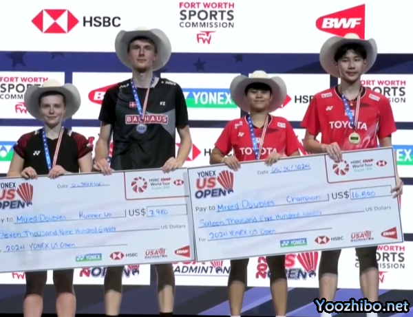 北京时间07月01日,2024美国羽毛球公开赛混双决赛帕克卡波/慕恩旺vs杰斯帕/艾米丽,帕克卡波/慕恩旺以2-1击败杰斯帕/艾米丽,获得冠军。比分为15-21、21-19、 21-13。