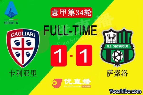24直播网讯 北京时间2020年07月19日01点30分进行的意甲第34轮比赛,卡利亚里主场对阵萨索洛。卡利亚里以1:1与萨索洛握手言和。